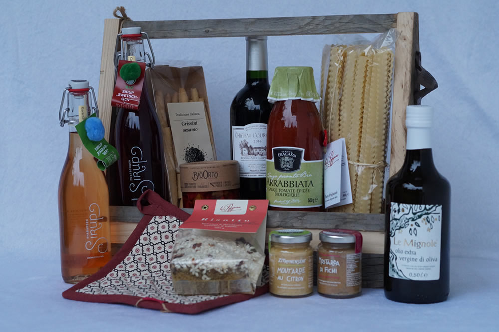 Reformkörbe, Glaswaren mit Deko/Kerzen, Dusch Geschenkset, Arvenprodukte